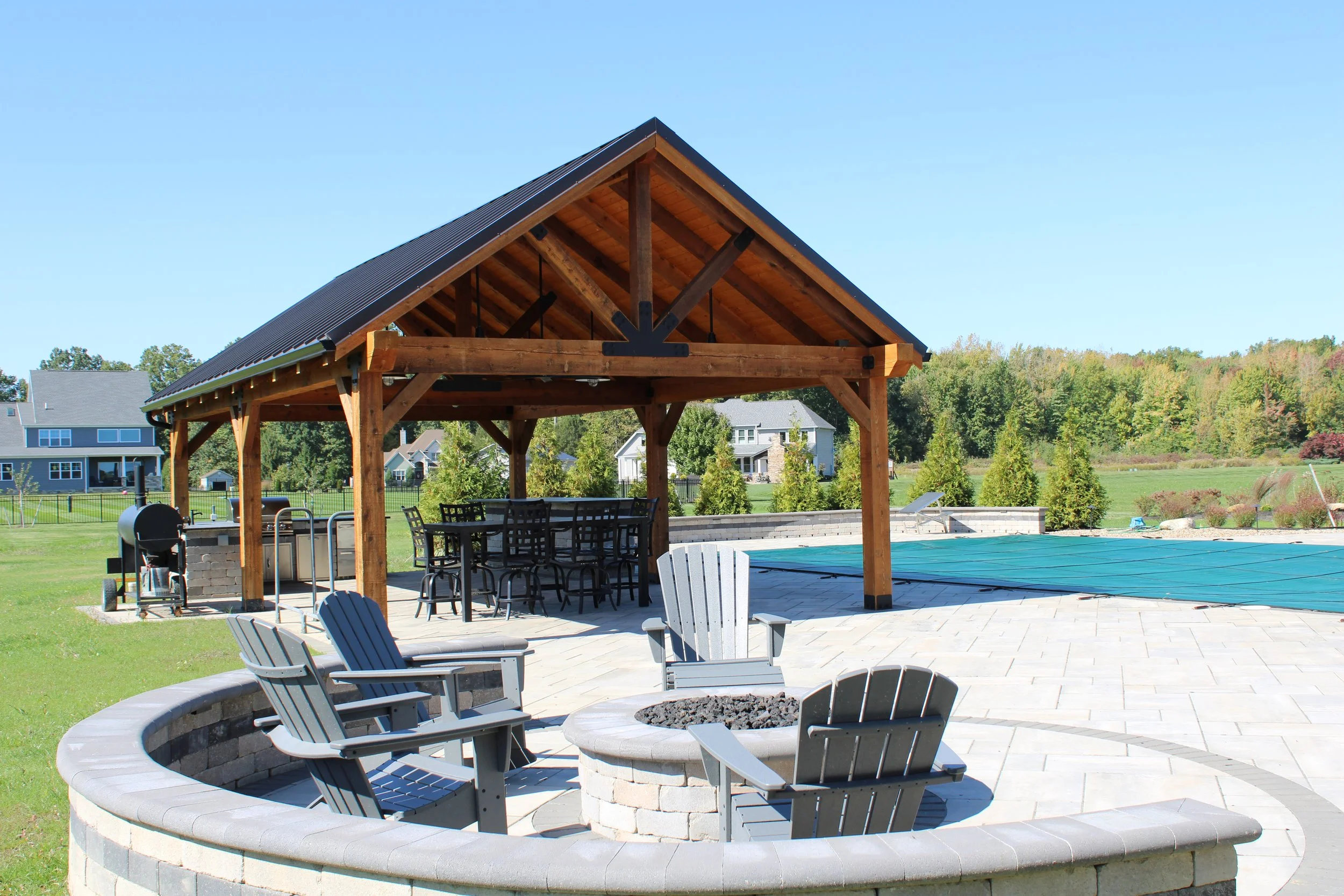 With our pavilion services, we specialize in creating outdoor sanctuaries that blend relaxation, entertainment, and natural beauty into one harmonious space. A pavilion is more than just a structure; it's an extension of your home that provides shelter and enhances your outdoor living experience.